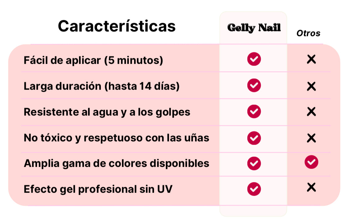 Gelly Nail transforma la manicura con nuestros adhesivos de gel. En solo minutos, obtienes un acabado profesional sin complicaciones. Fácil de usar, duradero y perfecto para proteger tus uñas naturales. ¡La forma más sencilla de tener unas uñas impecables!